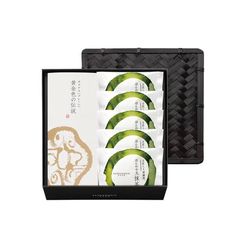 京都産抹茶を使った風味豊かな抹茶餡と求肥をしっとりとした皮ではさんだ銅鑼焼。