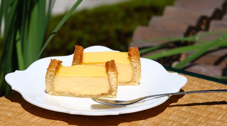 凹状(おうじょう)にしたカステラに卵の風味豊かなカスタードクリームをたっぷり敷き詰めた型に流し込み丁寧に焼き上げた生菓子。卵のコクを存分に楽しめる、然花抄院で人気の生菓子を是非ご自宅でお召し上がりください。