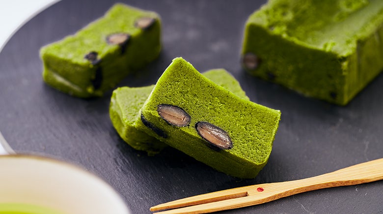京都産抹茶を使用した濃厚なテリーヌは、2種類の抹茶パウダーを独自配合し製造。