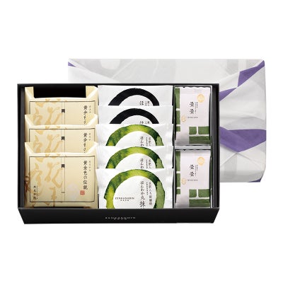 黄金色の伝説(カステラ/プレーン)一切れ3個/ほんわか丸(どら焼き)抹茶3個/ほんわか丸(栗入りどら焼き)2個/畳畳12枚入の詰合せ(風呂敷包み)のレビューを書く